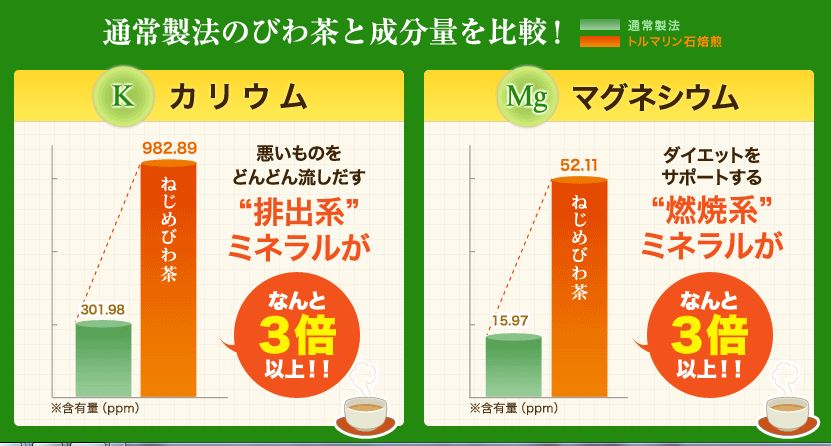 トルマリン焙煎した、ねじめびわ茶を飲んだらわかります。